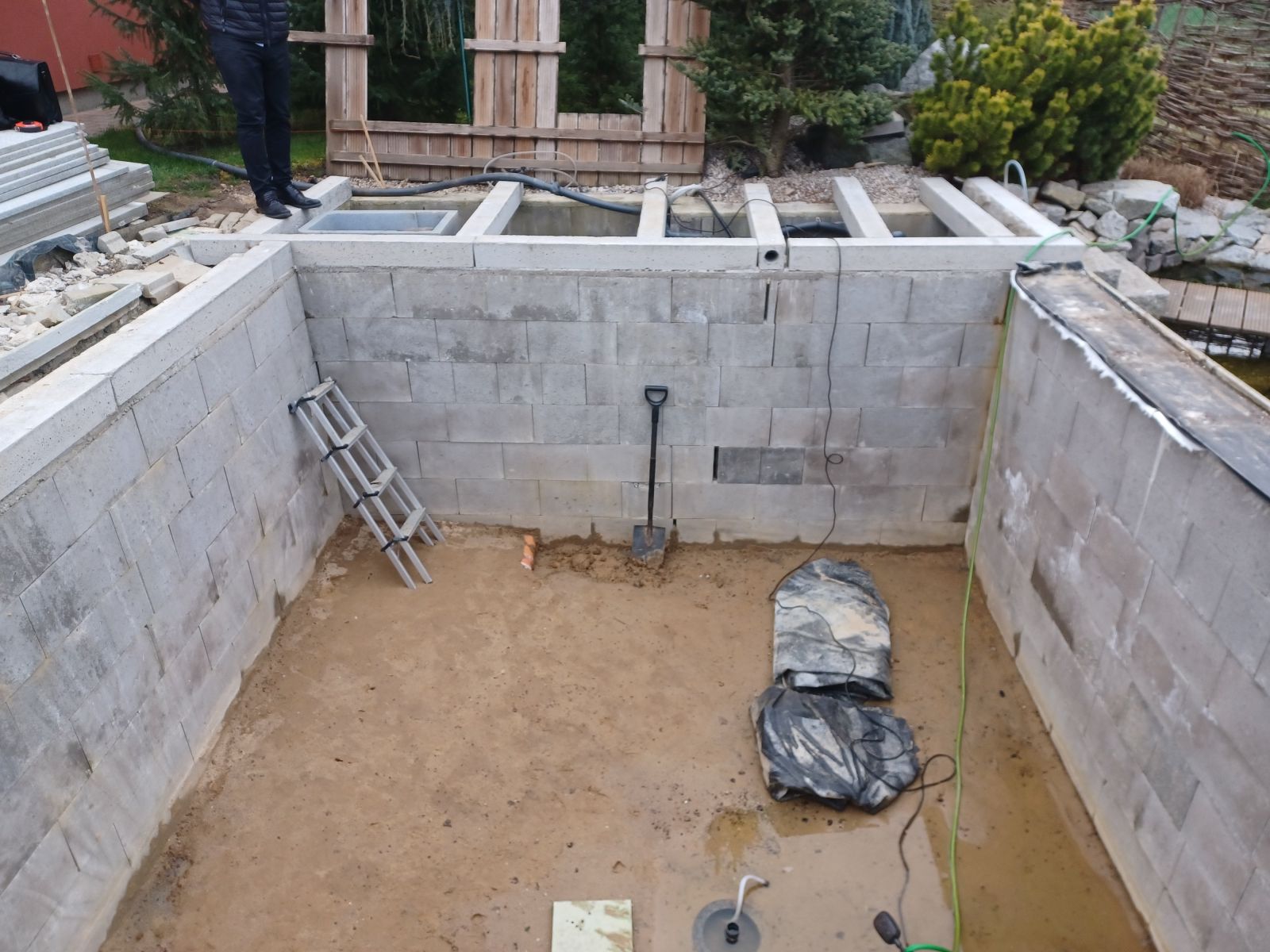 Nerezový bazének propojený s jezírkem
