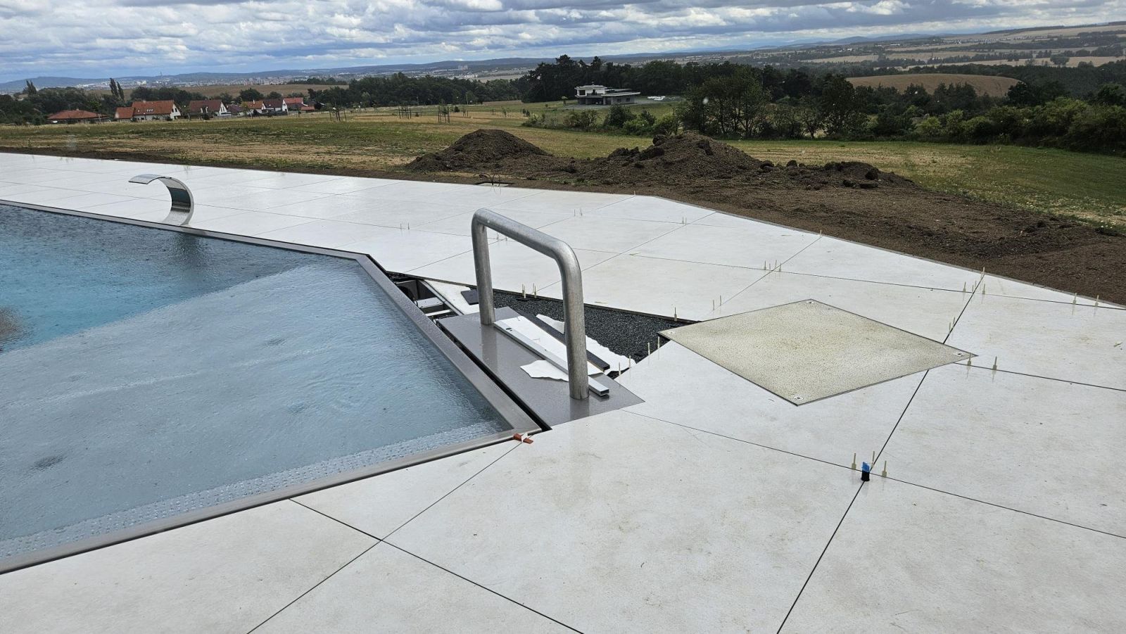 Byly dokončeny práce na přelivovém bazénu o rozměrech 28x4m. Plavecká část bazénu je dlouhá 25m. Zbytek bazénu je tvořen brouzdalištěm se vzduchovacími, které budou především atrakcí pro děti. Bazén má skrytý žlab s odtokovou štěrbinou a nerezový chrlič. Součástí vybavení je i nasvícení bazénu podvodními LED reflektory.