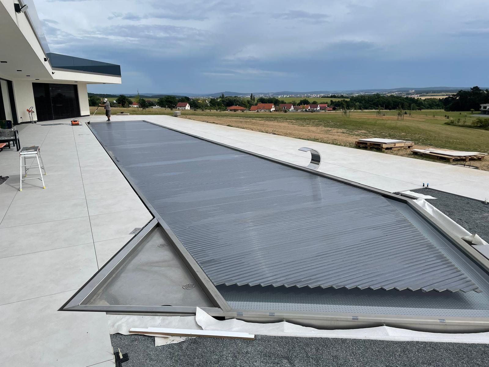 K zakrytí bazénu bude sloužit podvodní roleta umístěná ve stěně bazénu. Více v našich realizacích.