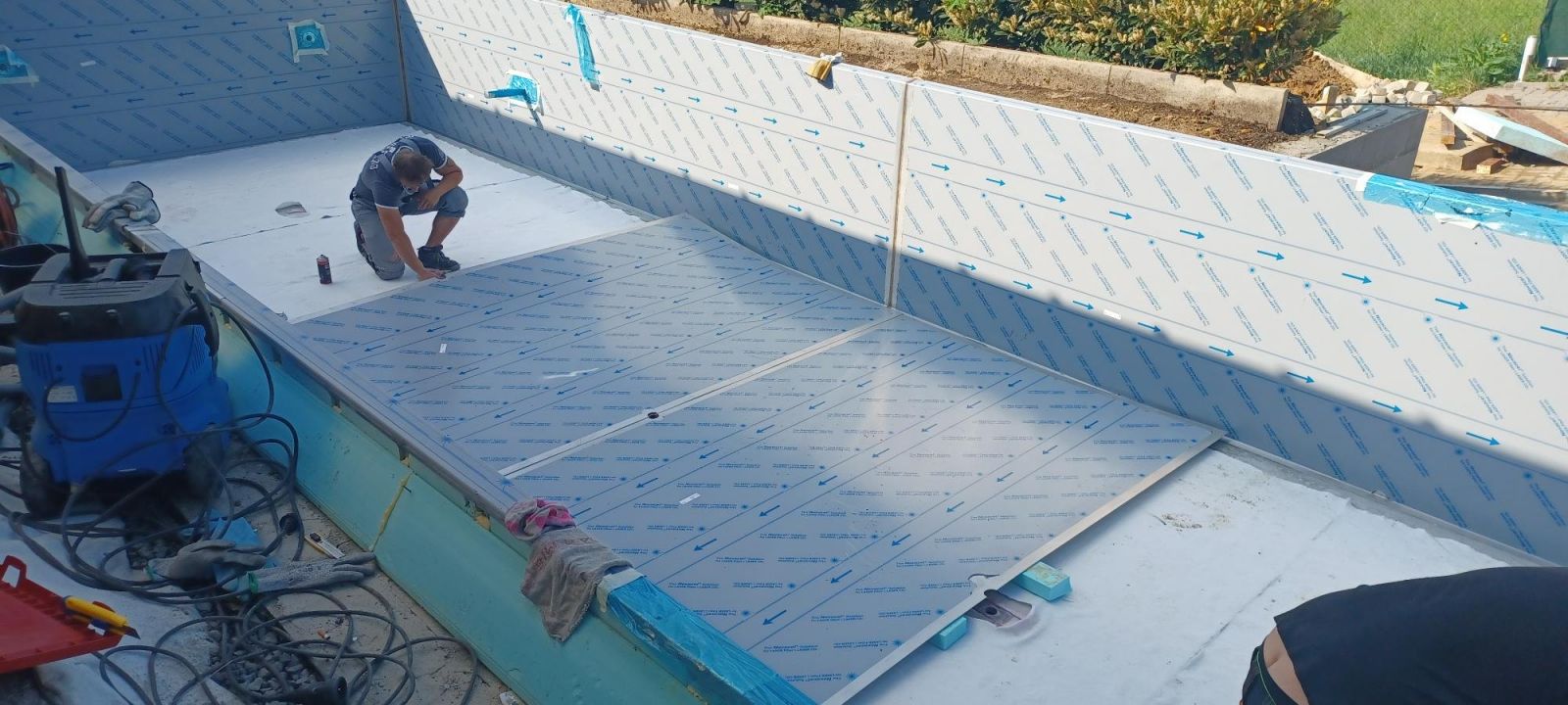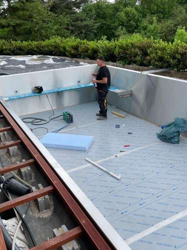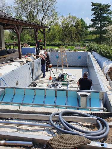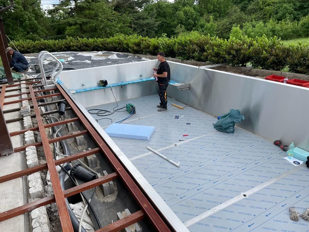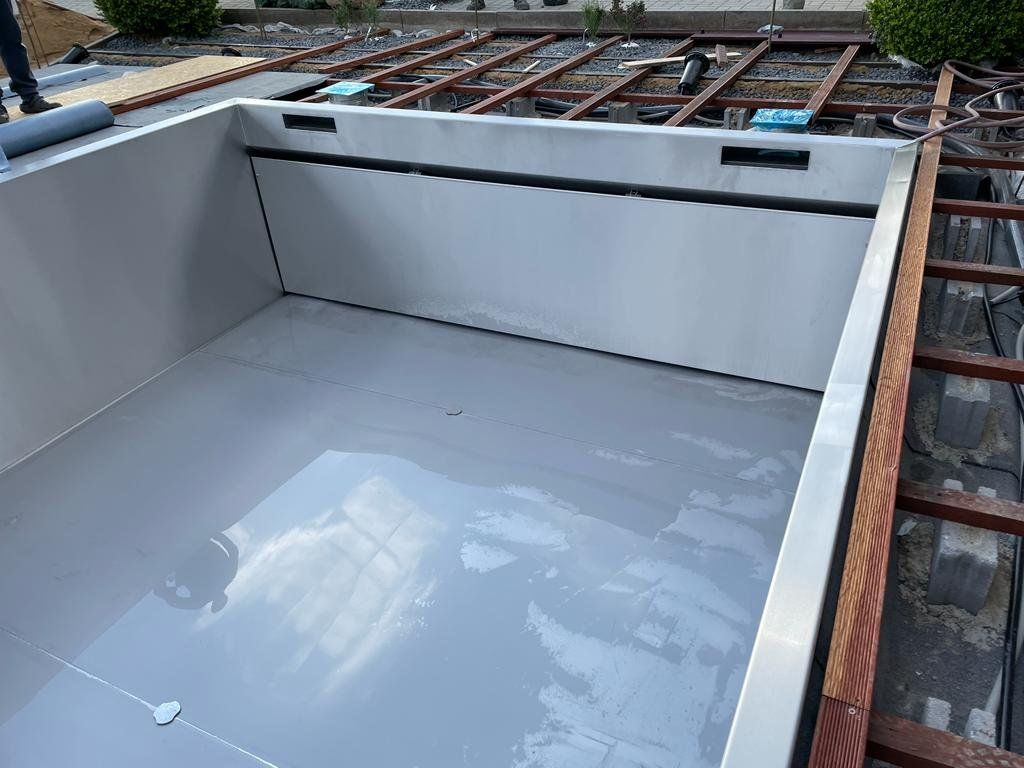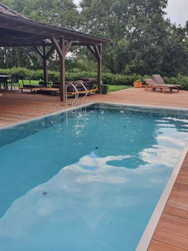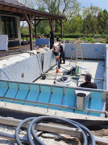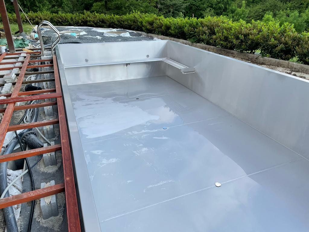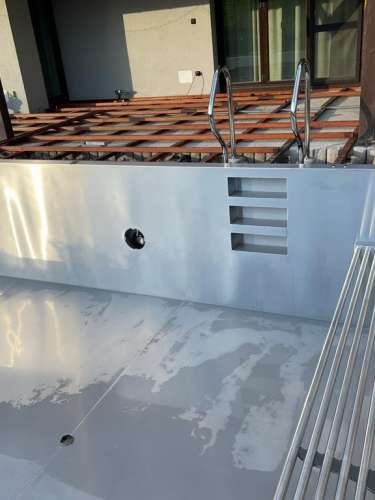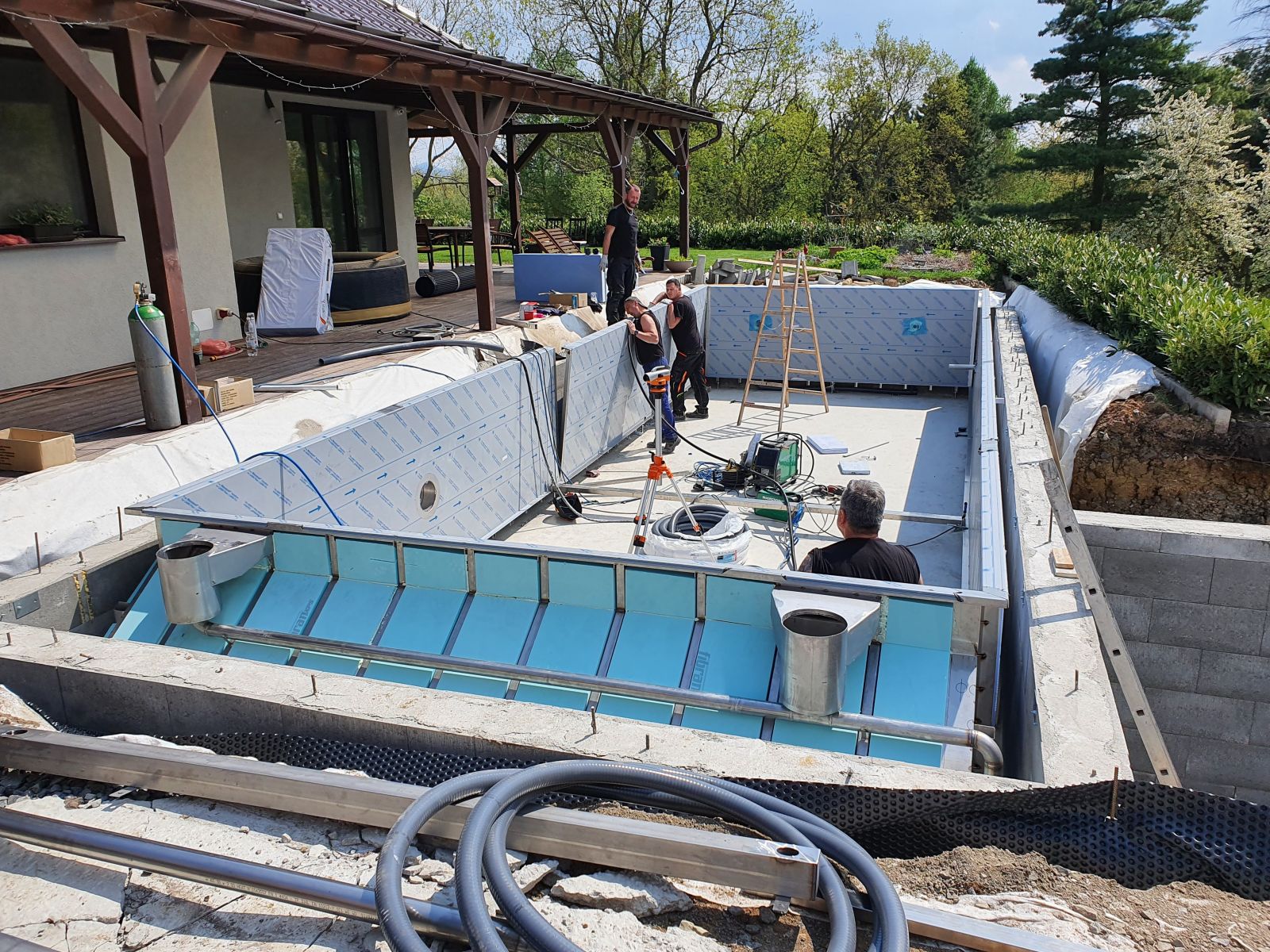 Dokončili jsme montáž skimmerový bazénu o rozměrch 11x4m. Bazén má 2 superskimmery a podvodní roletu ve stěně bazénu, ketrá nezmešuje užitnou plochu bazénu, je ukryta za přepážkou. Vstup do bazénu zajišťují výklenkové schůdky s madlem. Dno bazénu je osazneno dnovými vstupními tryskami. Věříme, že majiteli bude bazén dobře sloužit a jak je vidět, bude i krásným prvkem jeho zahrady.