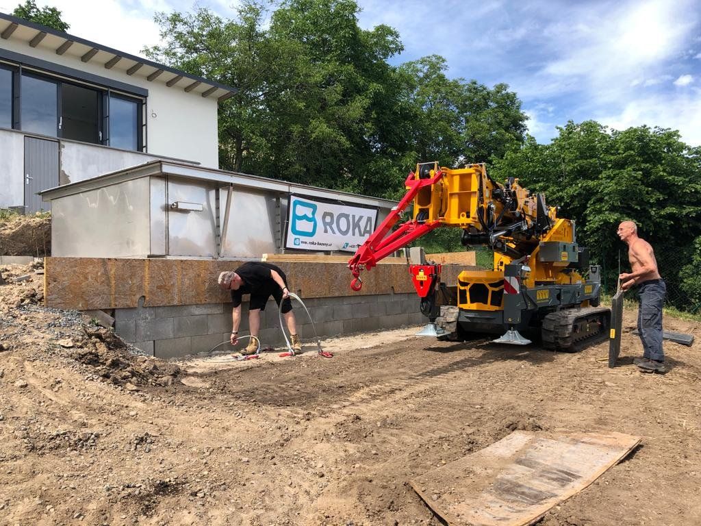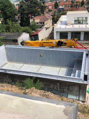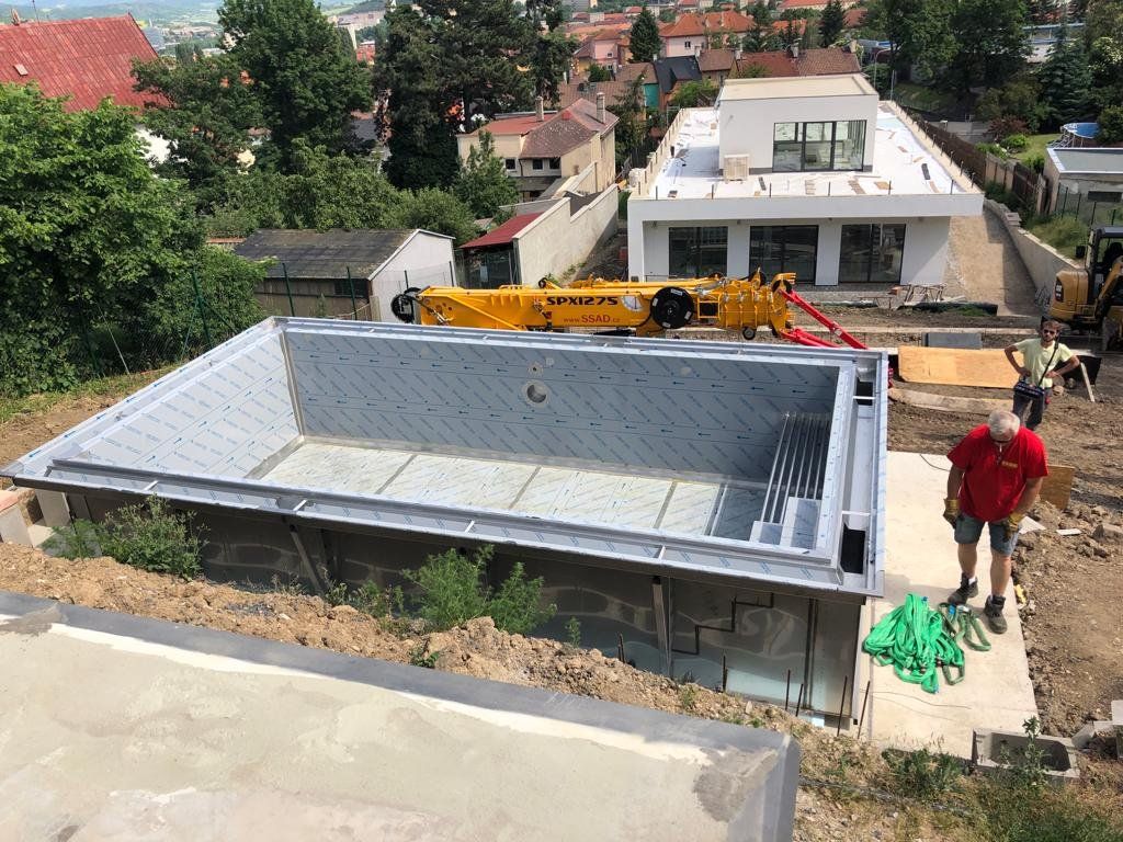 Nerezový přelivový bazén 6x3m. Umístění bazénu je situováno ve svahových terasách z aobjektem. Obtížné umístění s nádherným konečným efektem
