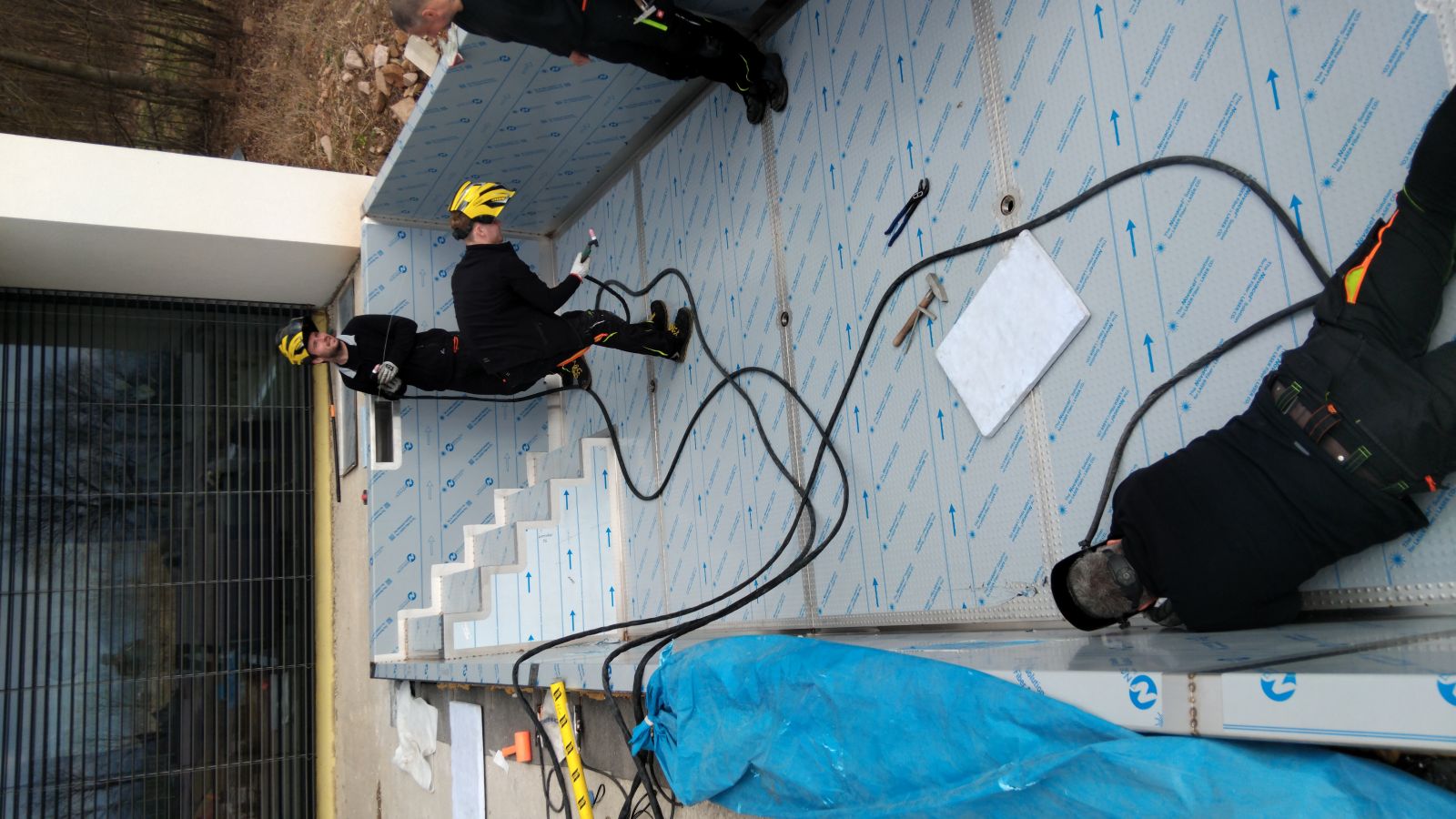 Skimmerový bazén o rozměru 7,5x 3m s klasickým schodištěm, LED osvětlením a podvodní roletou ukrytou ve dně bazénu.